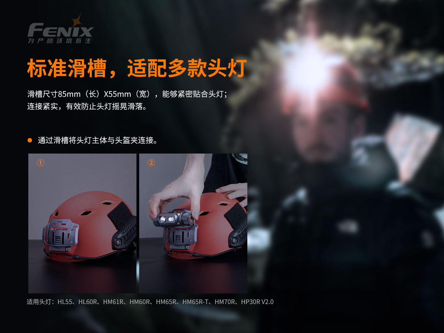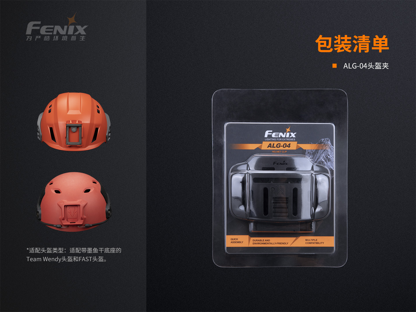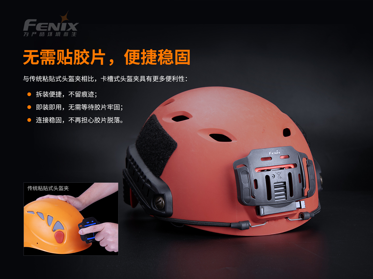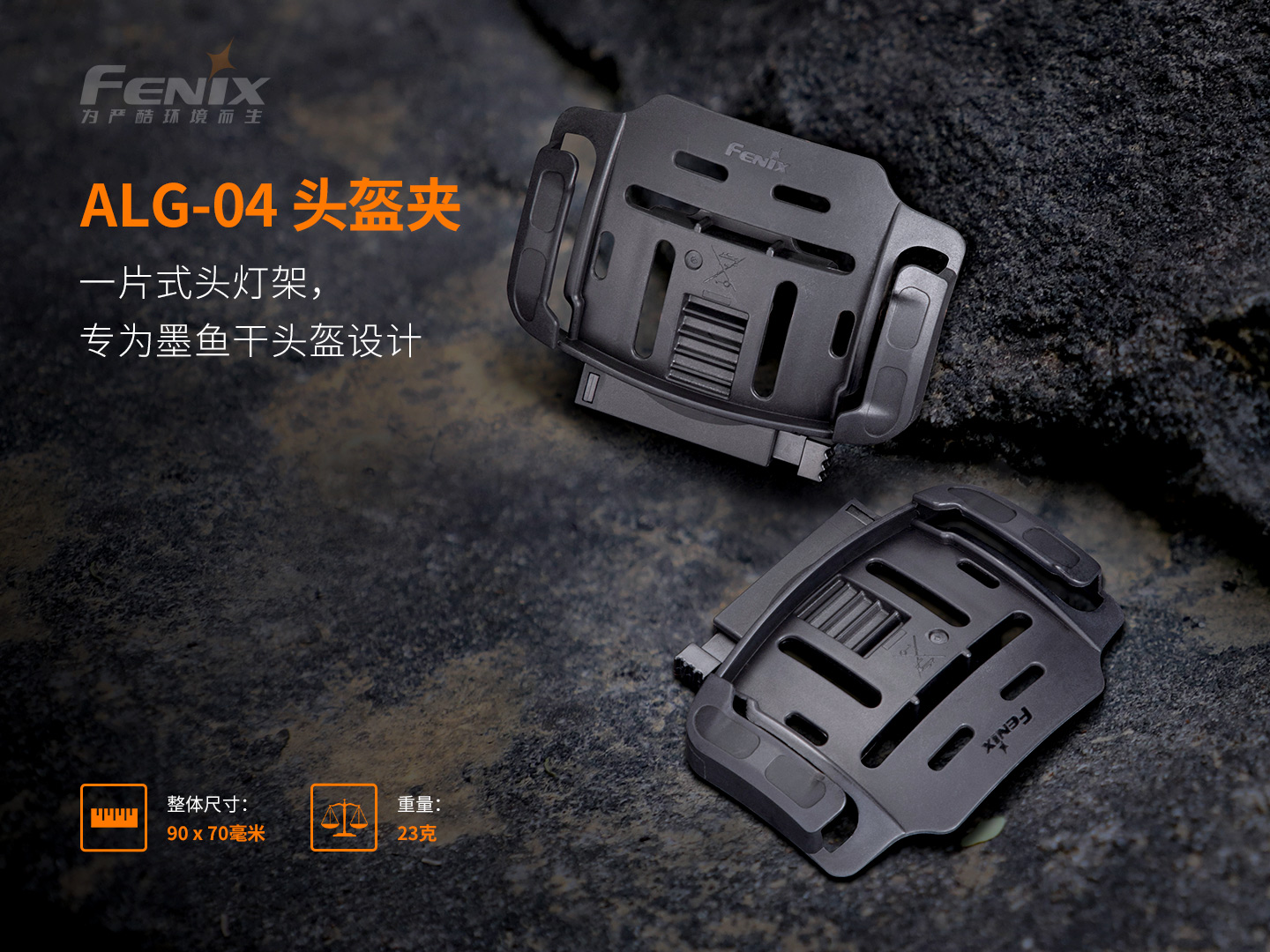Fenix ALG-04頭盔夾是專為頭燈固定在帶有墨魚干的頭盔而設(shè)計的配件。ALG-04頭盔夾可以直接卡在墨魚干槽口上,簡單便捷,不留痕跡。頭盔夾采用滑槽設(shè)計,能快速將頭燈與頭盔連接或分離。