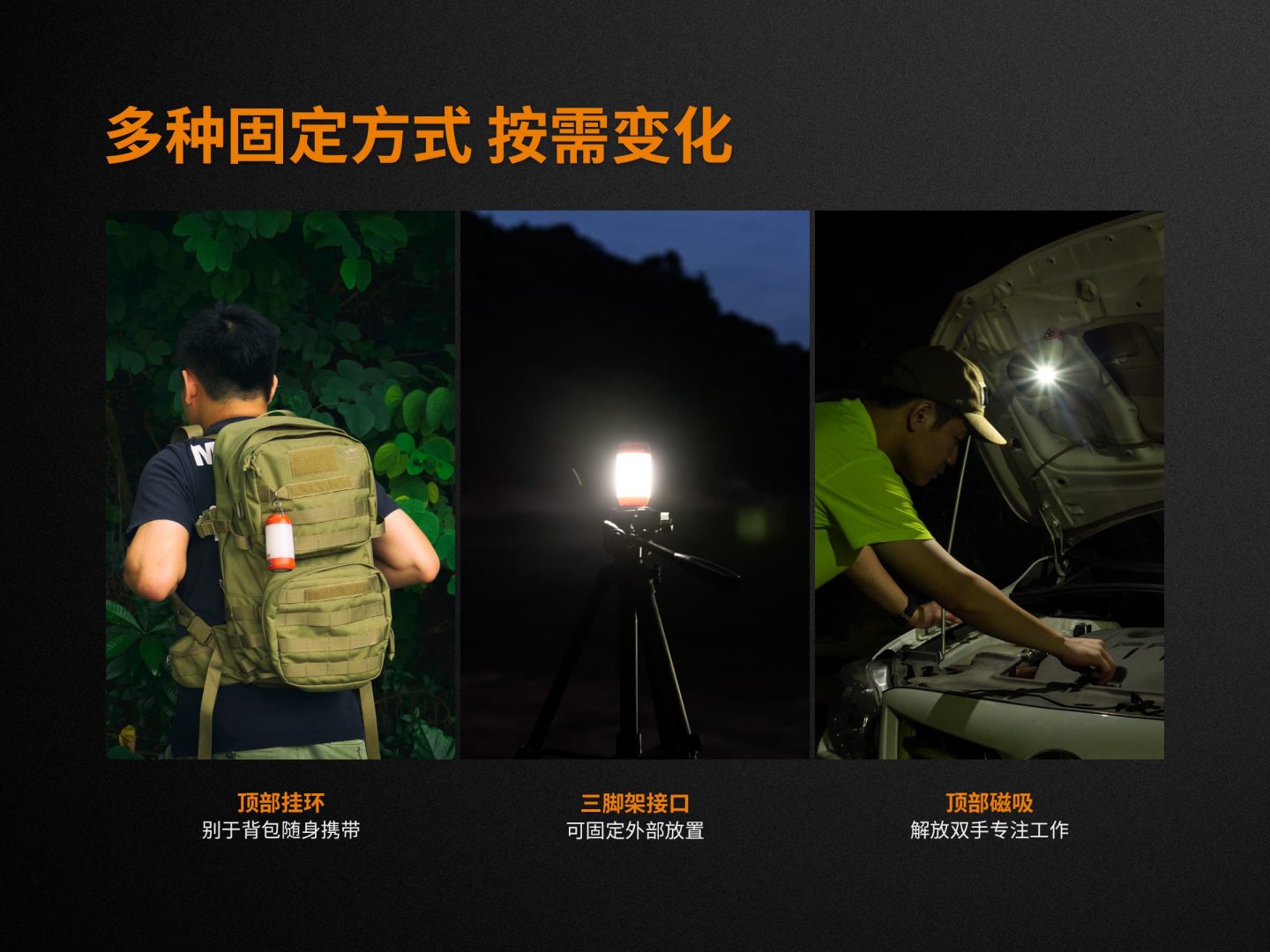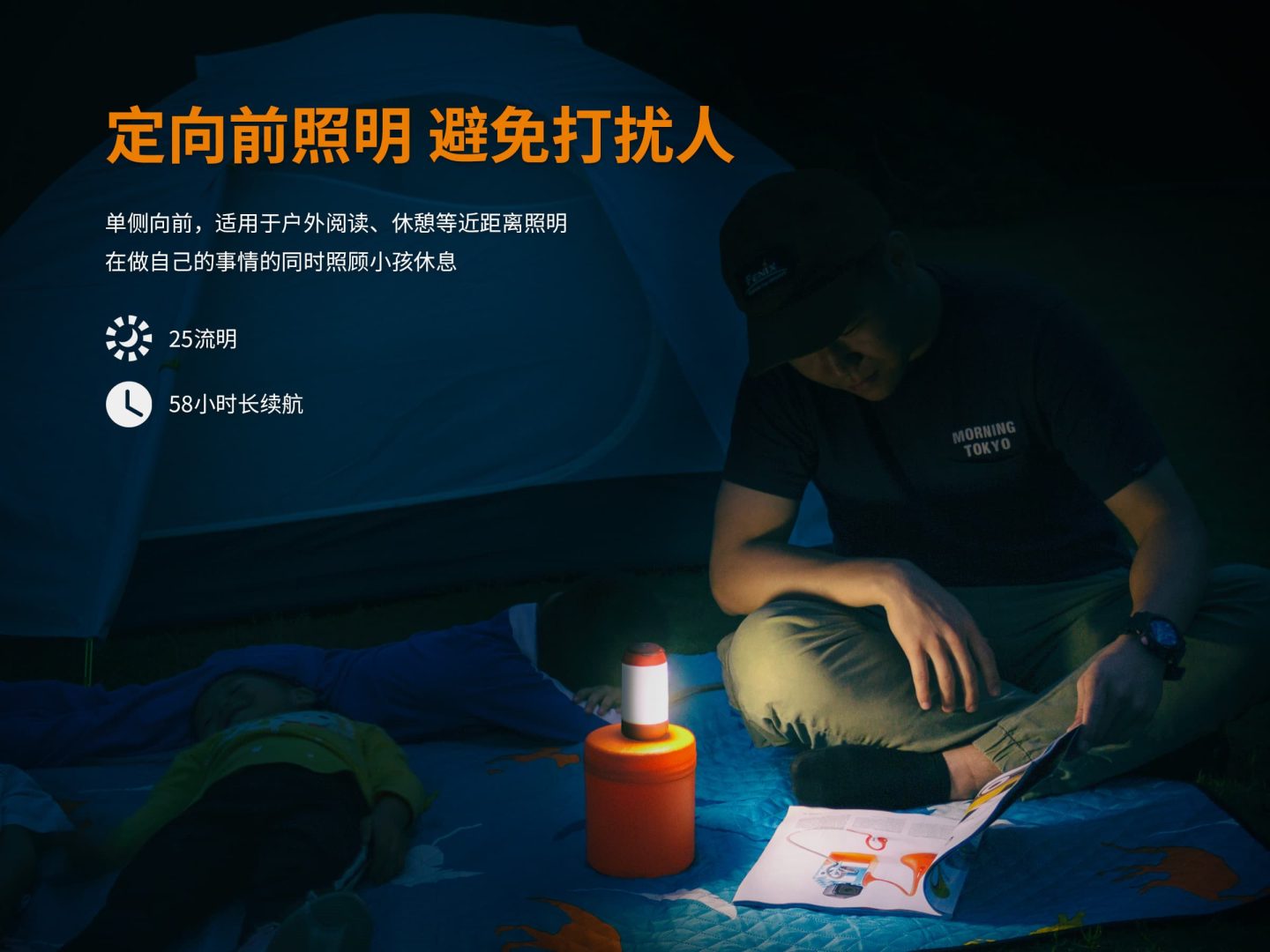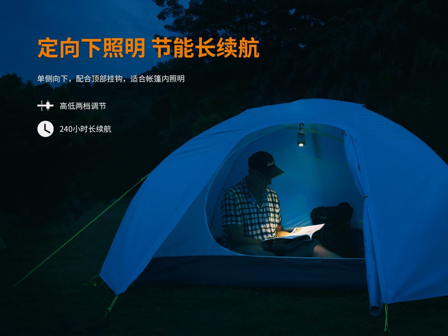 多種定向照明功能,兼顧帳篷內(nèi)照明和營地照明