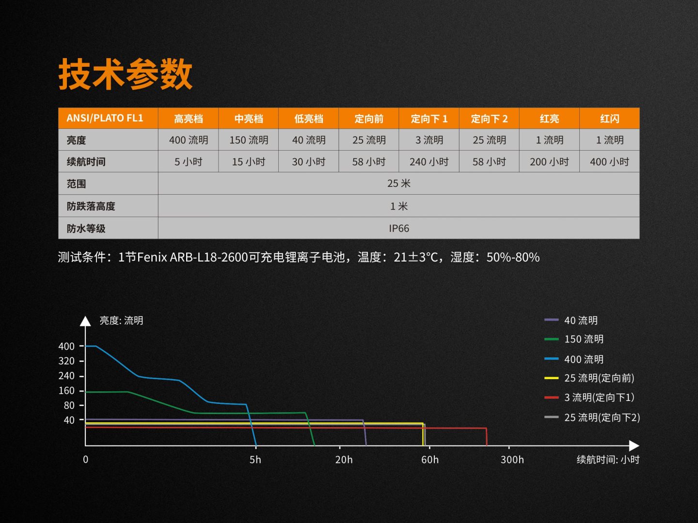 雙模式設(shè)計(jì),白光模式6個(gè)檔位,紅光模式2個(gè)檔位
