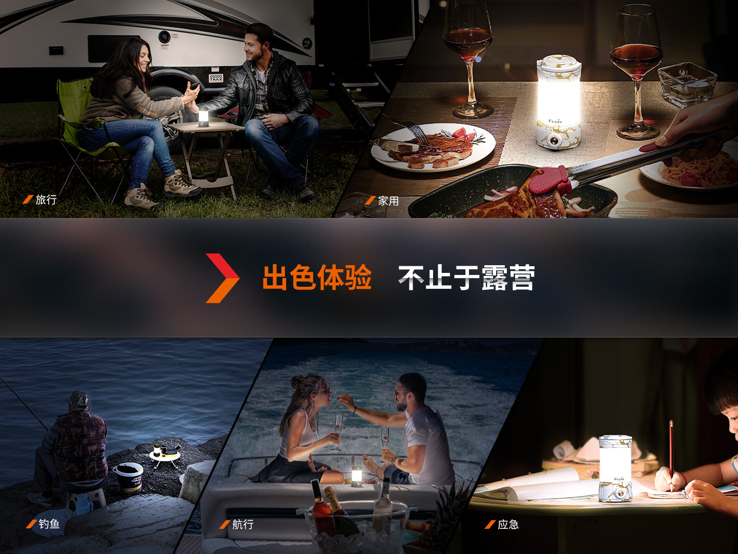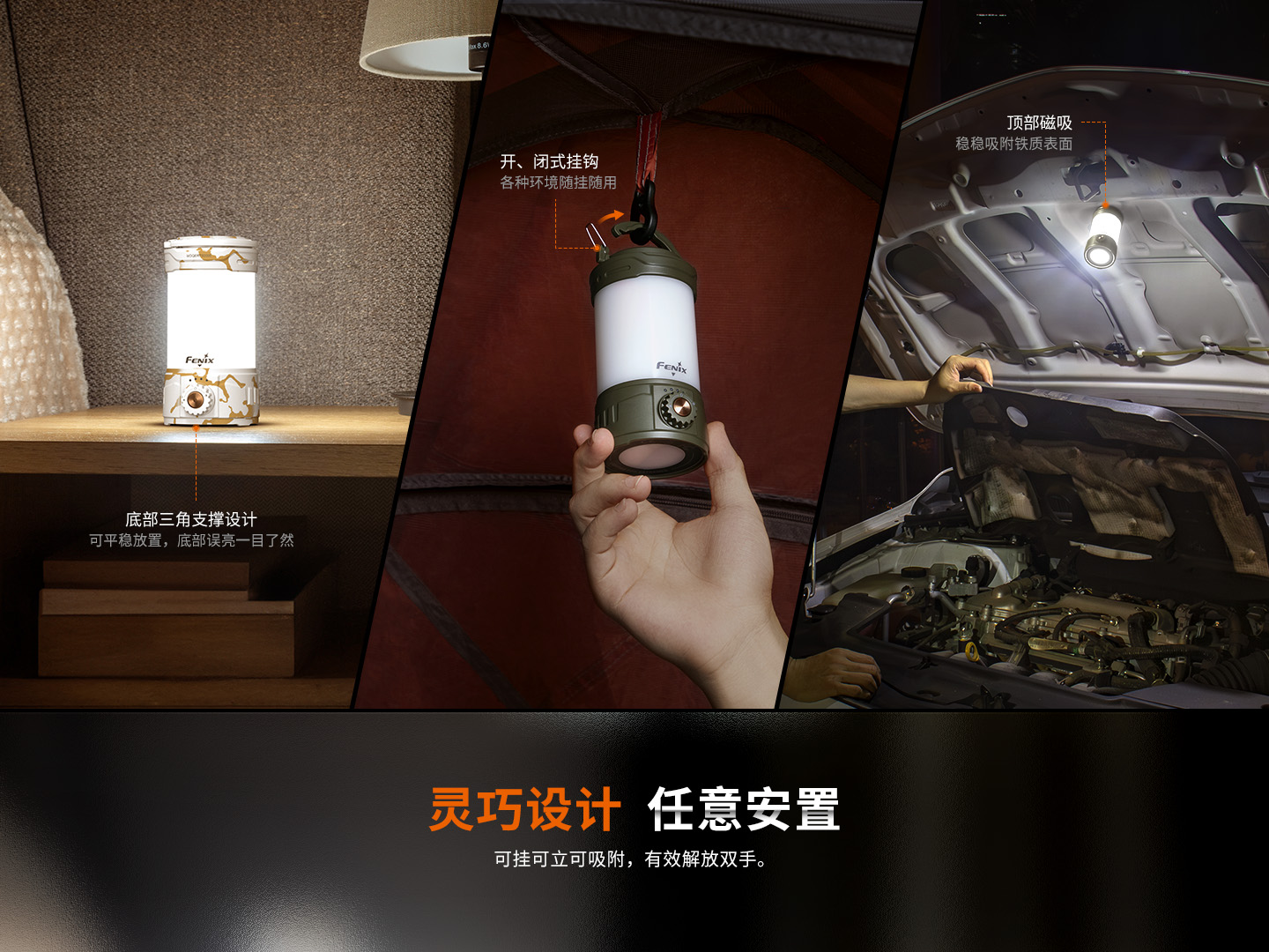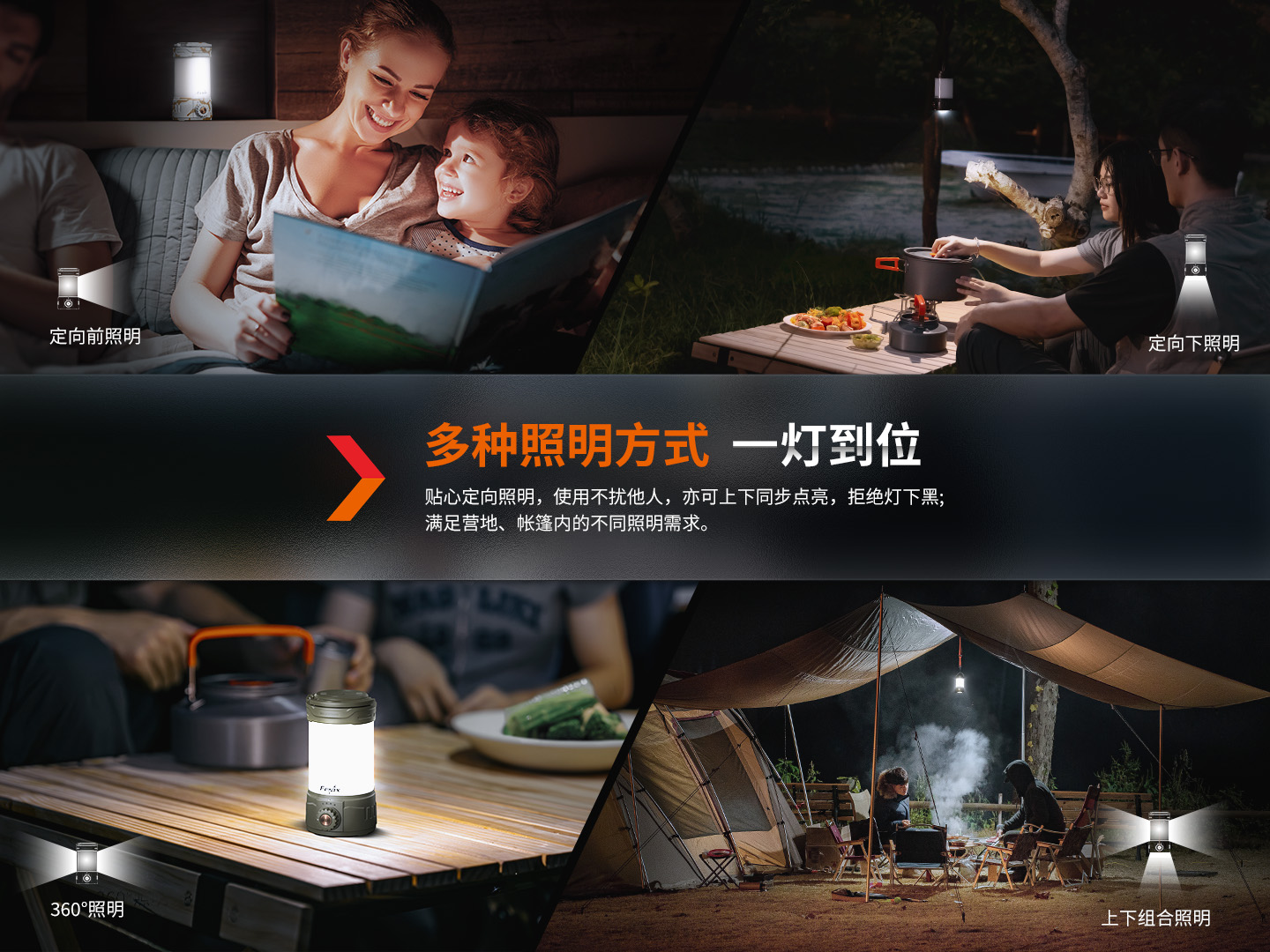 多種照明方式組合,可兼顧帳篷內(nèi)照明和營(yíng)地照明