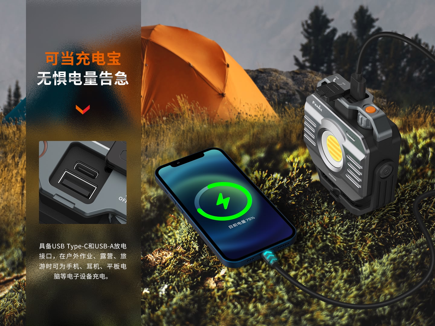 具有USB-A和USB-C放電接口,可作移動電源使用