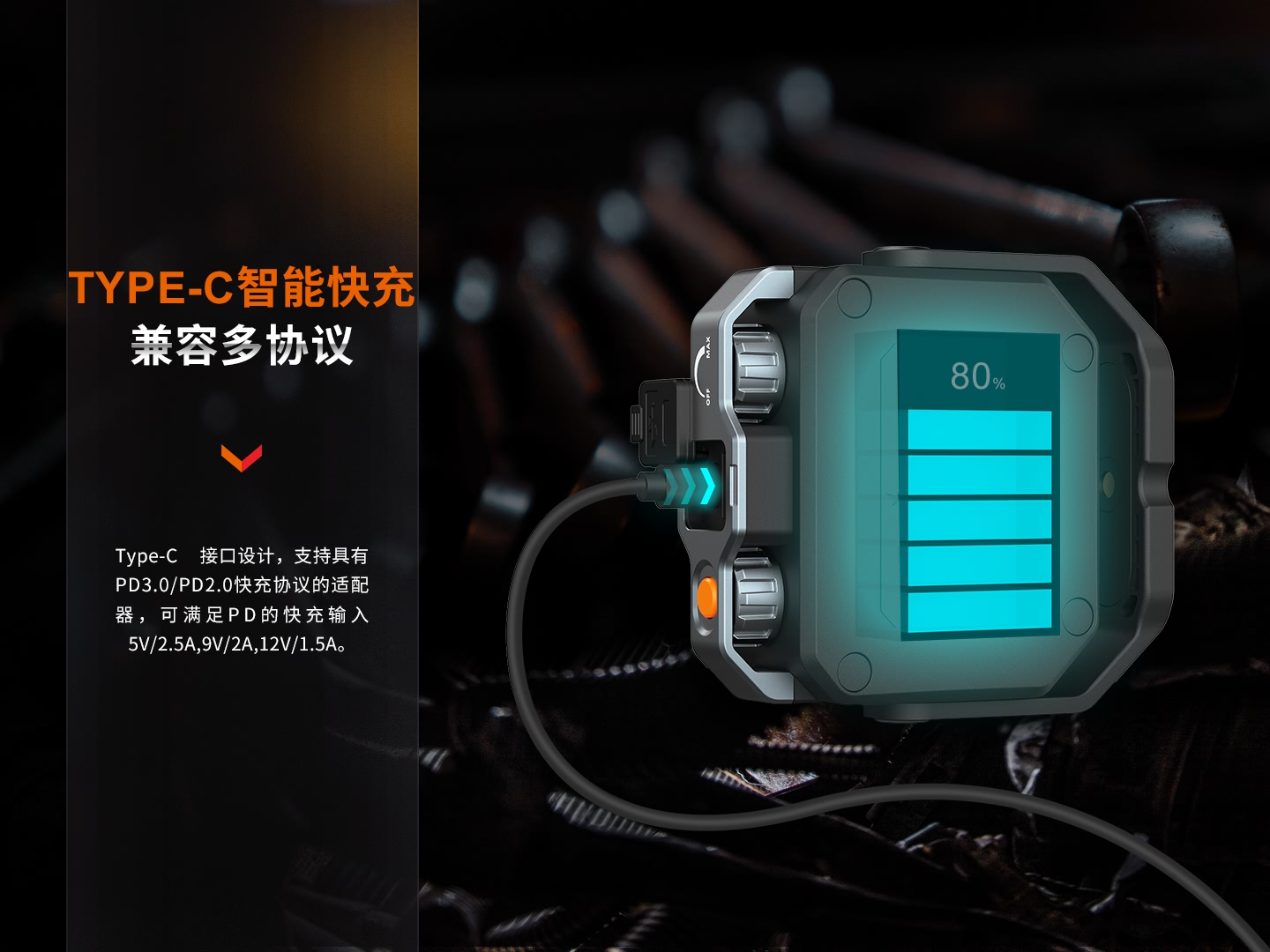 USB Type-C充電接口,有充電指示和低壓警示功能