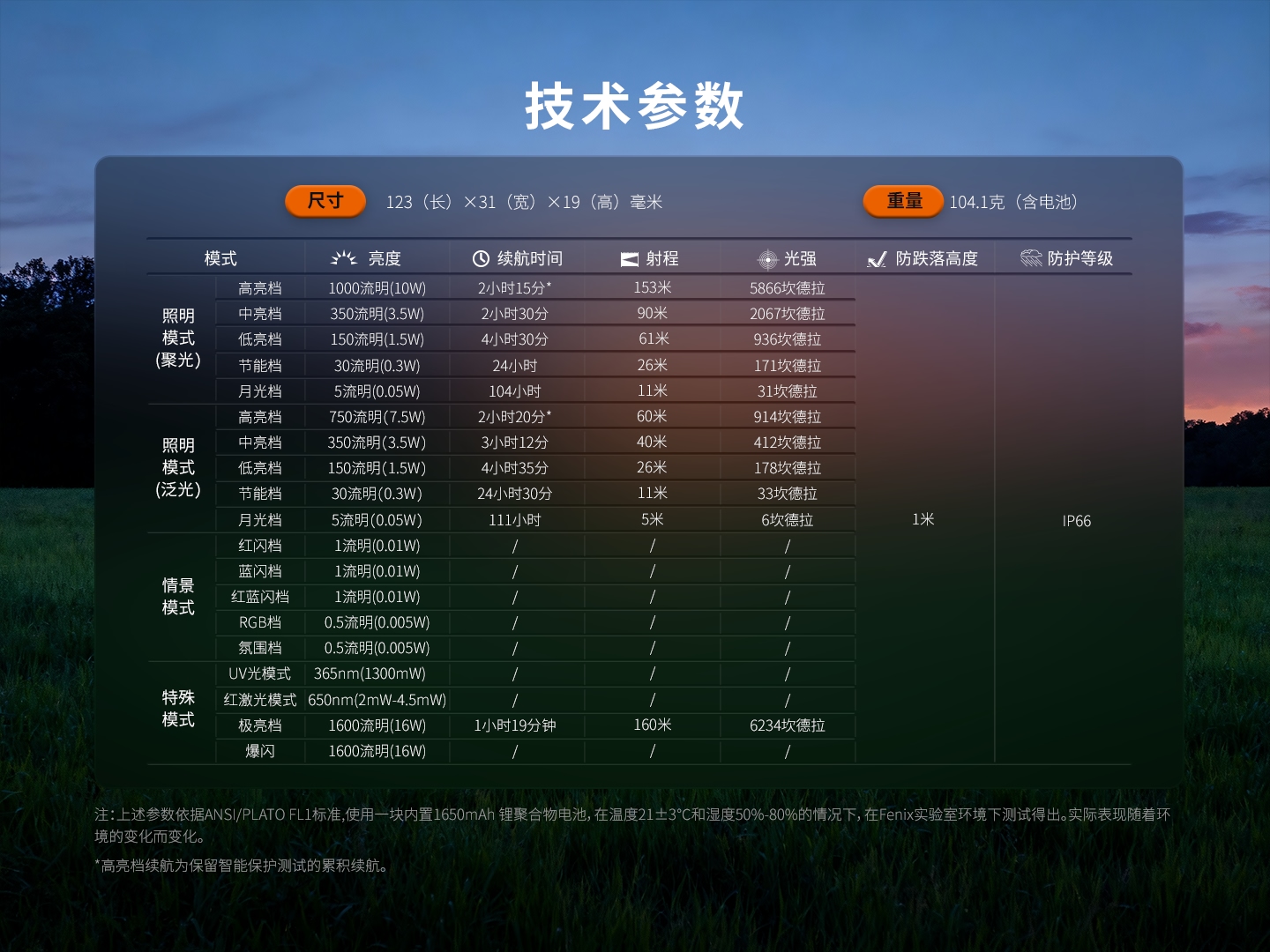 - 高亮度,遠射程? ?最高亮度達1600流明,最遠射程160米