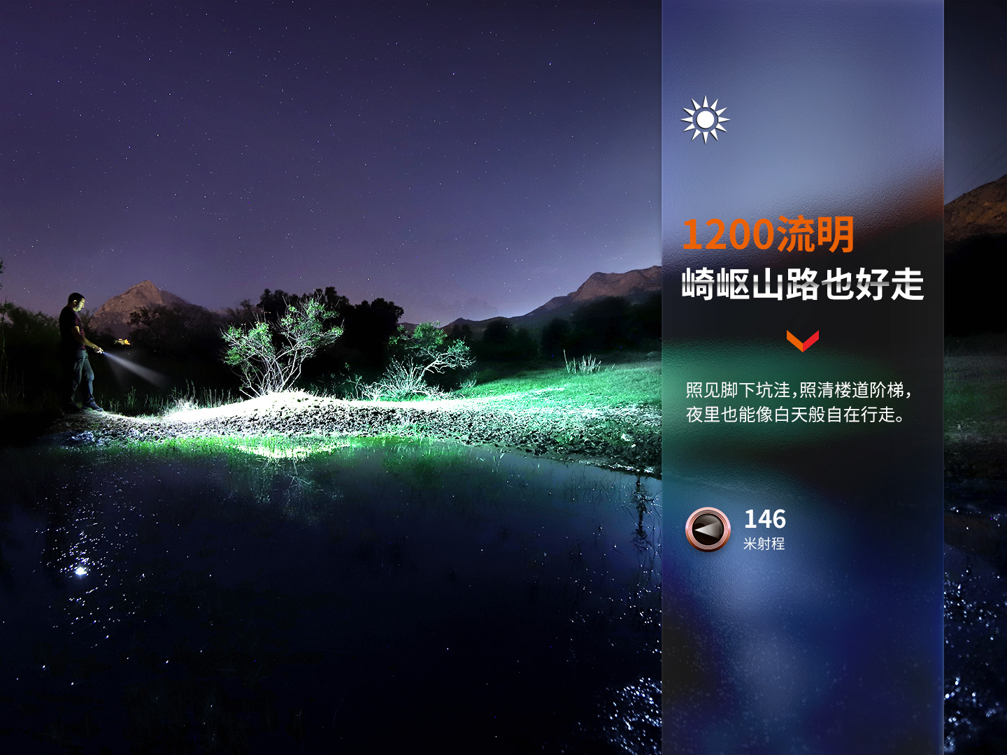 最高亮度1200流明,最遠(yuǎn)射程146米