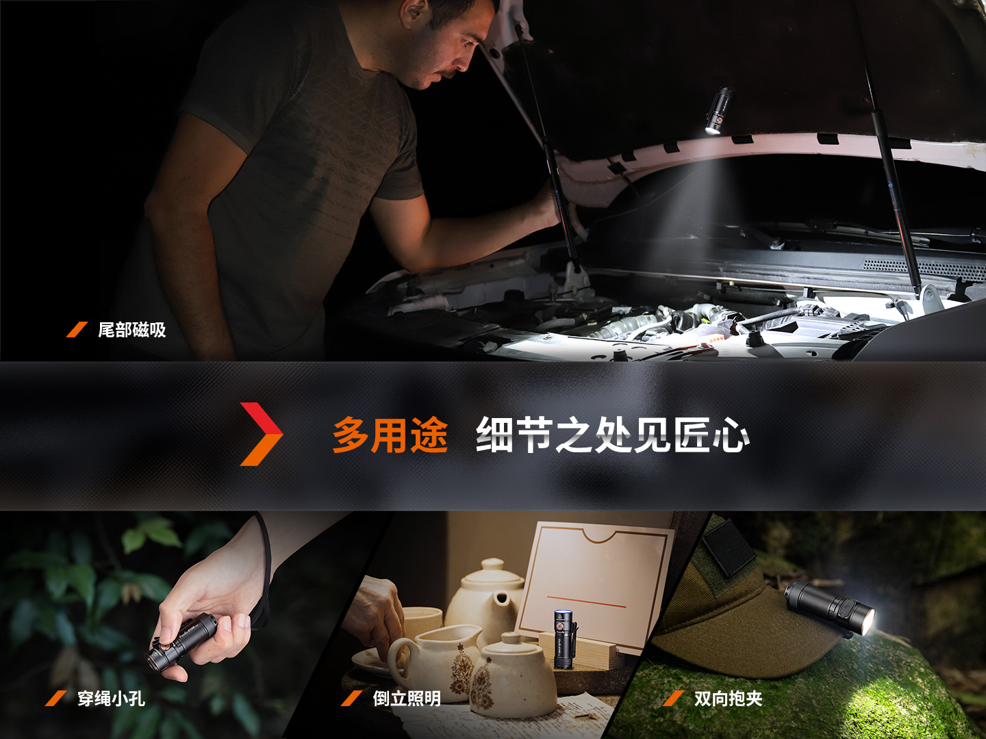 配置雙向抱夾,可隨時(shí)夾帽檐、掛背包