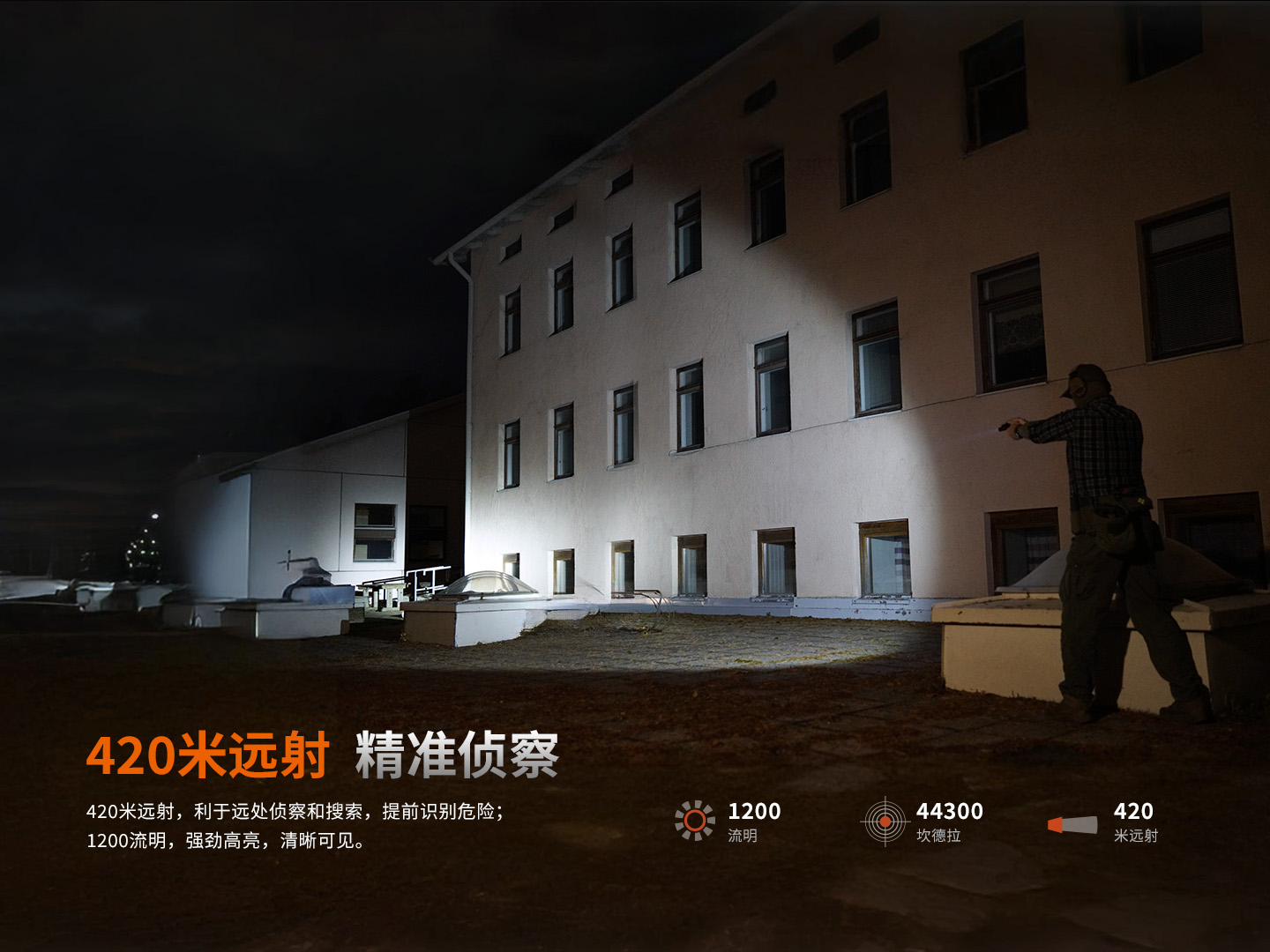 最高亮度1200流明,最遠(yuǎn)射程420米