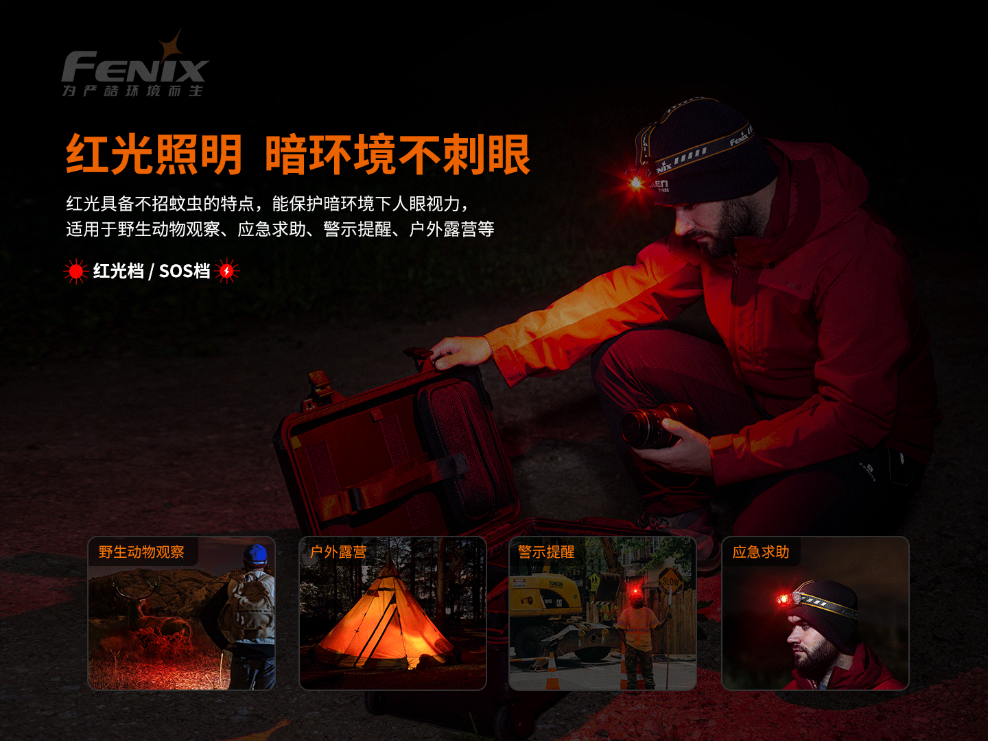 HM60R分別使用的是LED類型是LUMINUS SST40白光、XP-G2中白光LED,2835紅光;壽命50000小時;Fenix暫不提供更換LED服務(wù),同時也不建議使用者自主更換LED,會有影響產(chǎn)品性能以及造成產(chǎn)品損壞的風險。