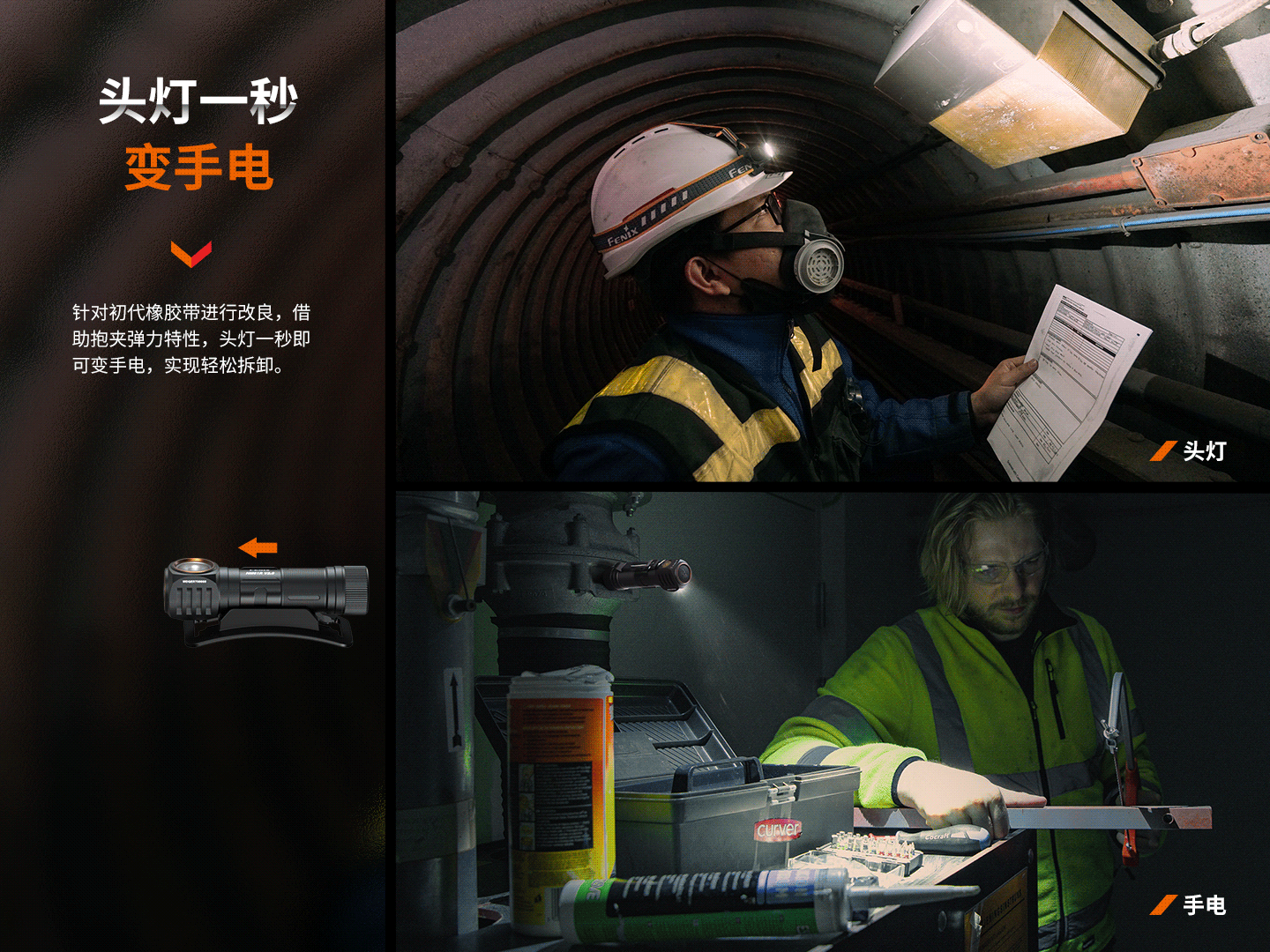 - 頭燈變身一舉兩得手電與胸?zé)?/strong>