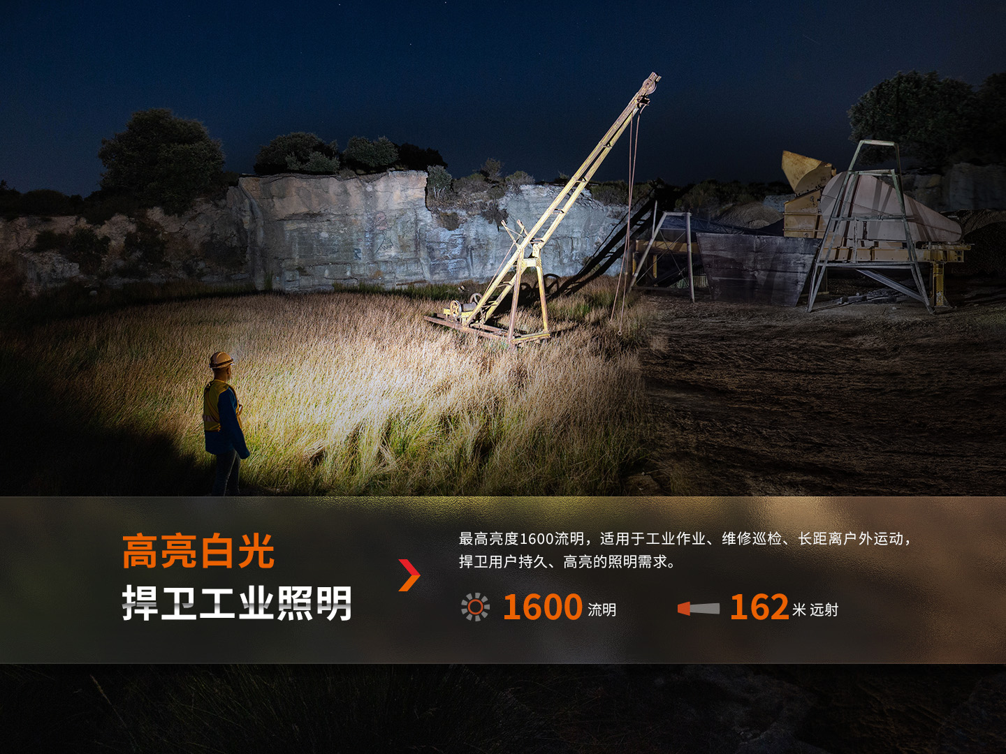 最高亮度1600流明,最遠(yuǎn)射程162米