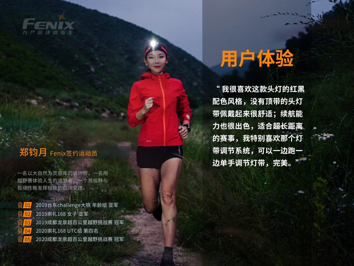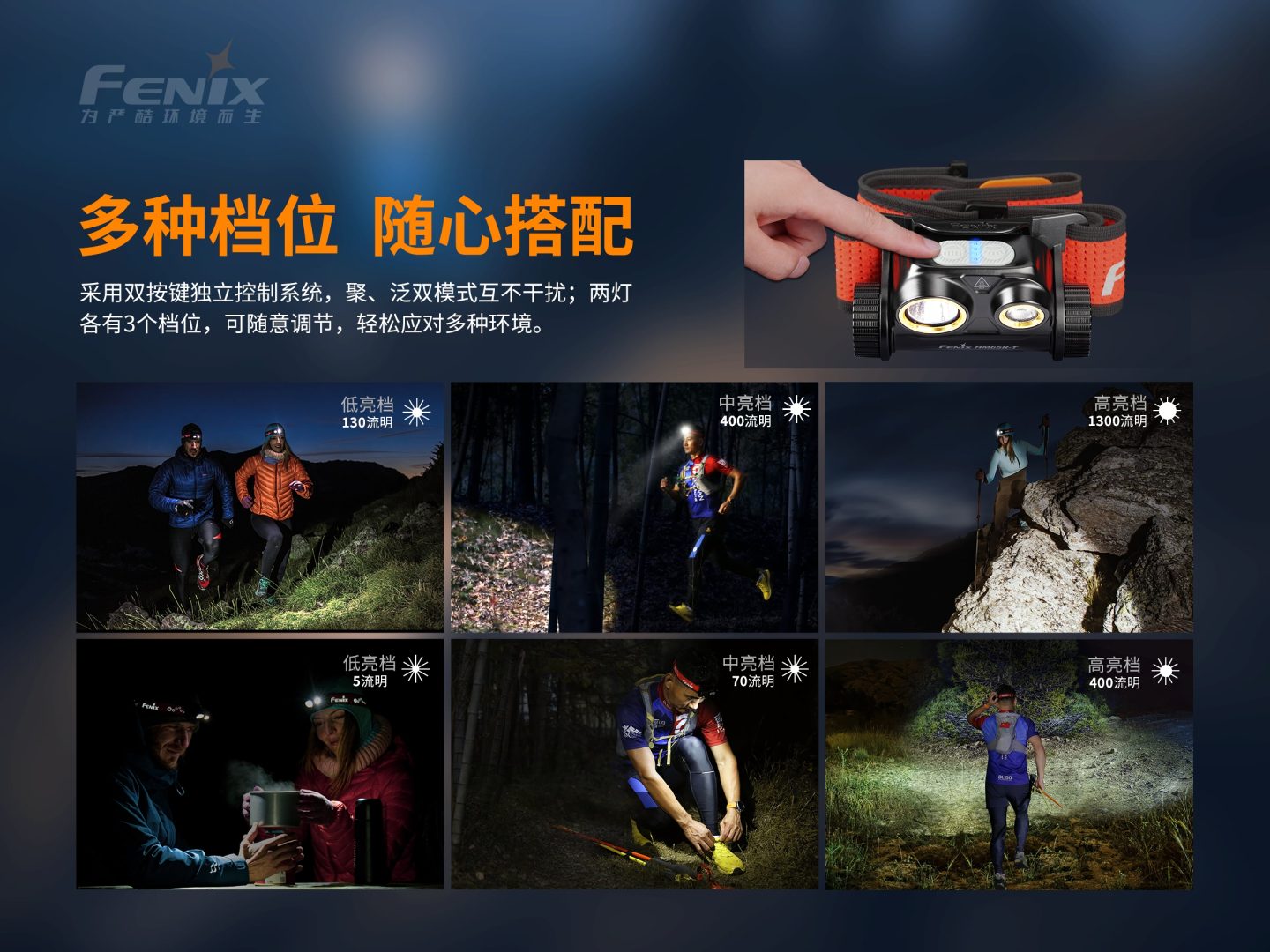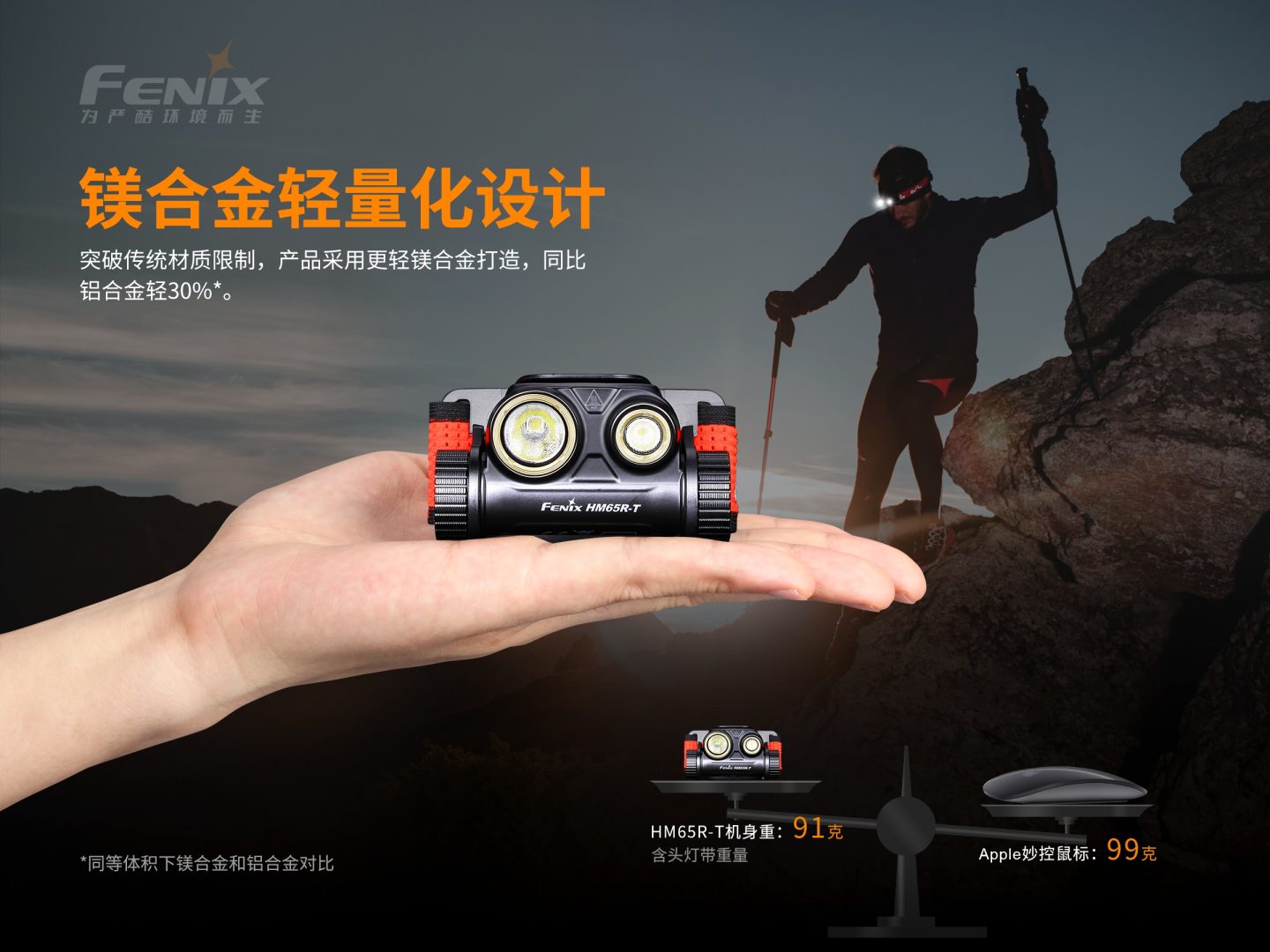 Fenix HM65R-T是一款高亮度長(zhǎng)續(xù)航越野跑頭燈,使用1節(jié)18650可充電鋰離子電池,最高亮度達(dá)1500流明,最遠(yuǎn)射程170米;頂部雙按鍵自由控制泛光、聚光模式,并具備防誤觸功能;鎂合金材質(zhì)機(jī)身及加寬反光鏤空頭燈帶,佩戴更輕更舒適;加上IP68防護(hù)及抗2米跌落能力,是您戶(hù)外越野跑步的上佳之選。