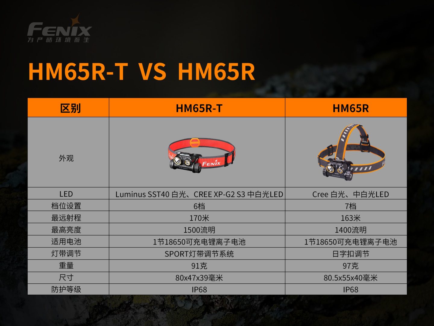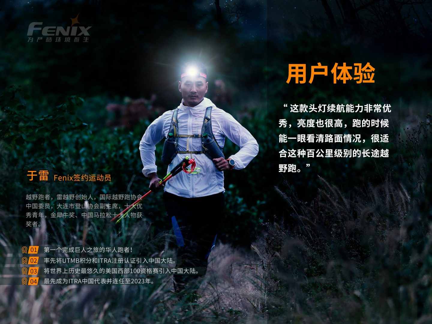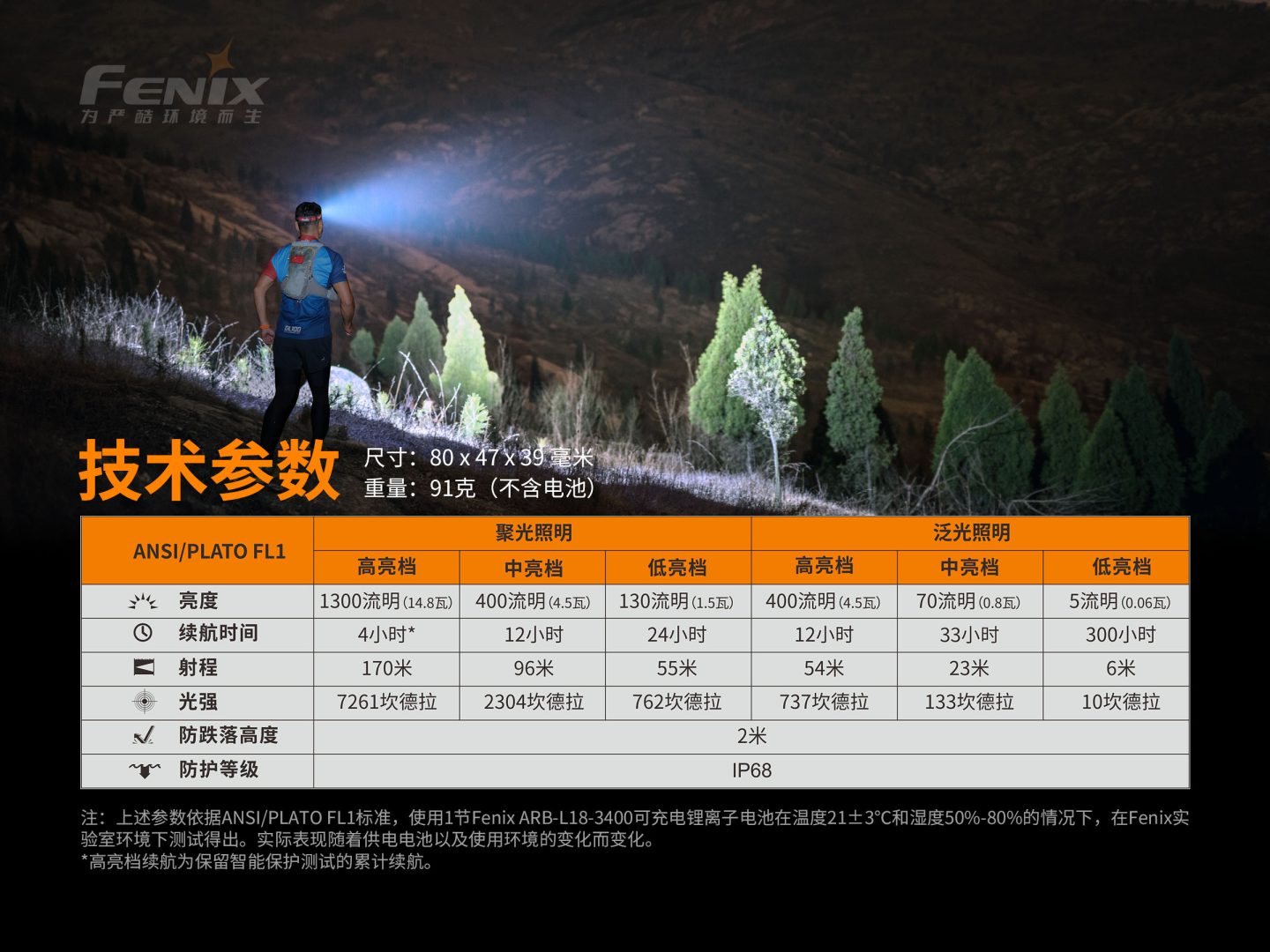 Fenix HM65R-T是一款高亮度長(zhǎng)續(xù)航越野跑頭燈,使用1節(jié)18650可充電鋰離子電池,最高亮度達(dá)1500流明,最遠(yuǎn)射程170米;頂部雙按鍵自由控制泛光、聚光模式,并具備防誤觸功能;鎂合金材質(zhì)機(jī)身及加寬反光鏤空頭燈帶,佩戴更輕更舒適;加上IP68防護(hù)及抗2米跌落能力,是您戶(hù)外越野跑步的上佳之選。