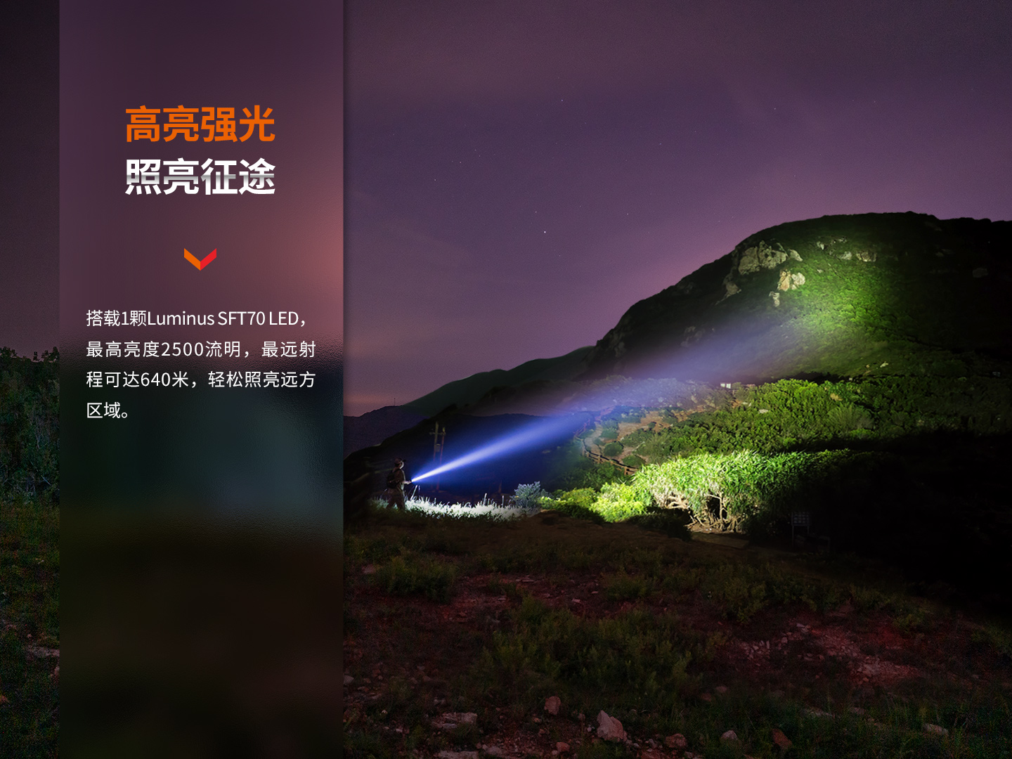 最高亮度2500流明,最遠(yuǎn)射程640米
