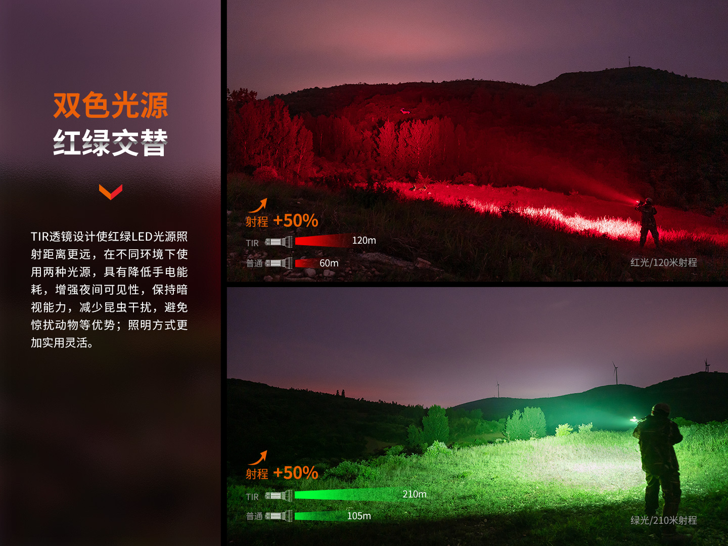 使用1顆Luminus SFT20 RA高性能紅光LED,能發(fā)出400流明紅光,最遠(yuǎn)射程120米