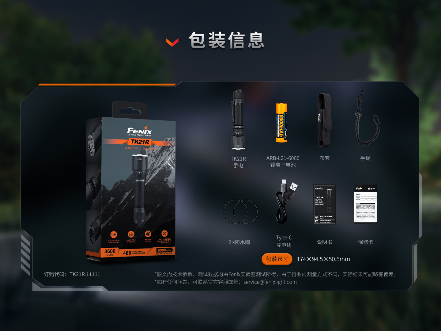 - 大容量6000毫安電池標(biāo)配1節(jié)Fenix ARB-L21-6000可充電鋰離子電池