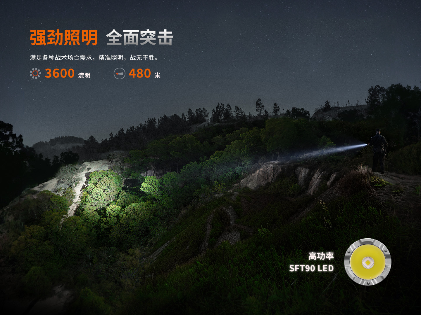 - 高亮遠(yuǎn)射最高亮度3600流明,最遠(yuǎn)射程480米