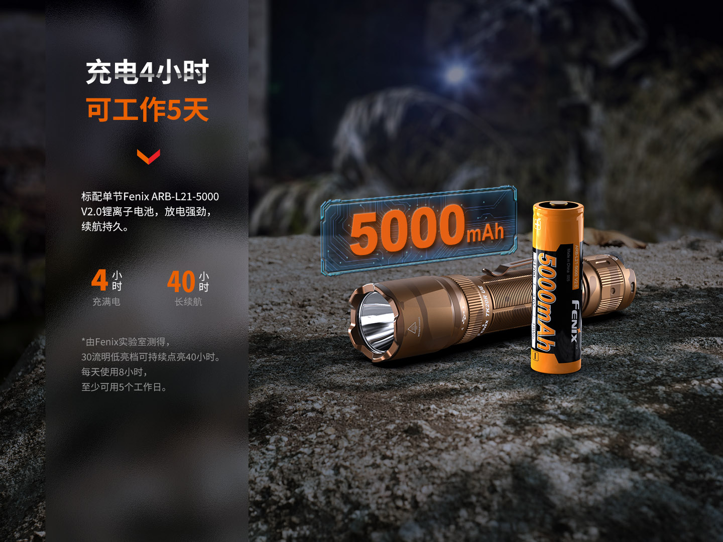 標(biāo)配1節(jié)Fenix ARB-L21-5000 V2.0鋰離子電池