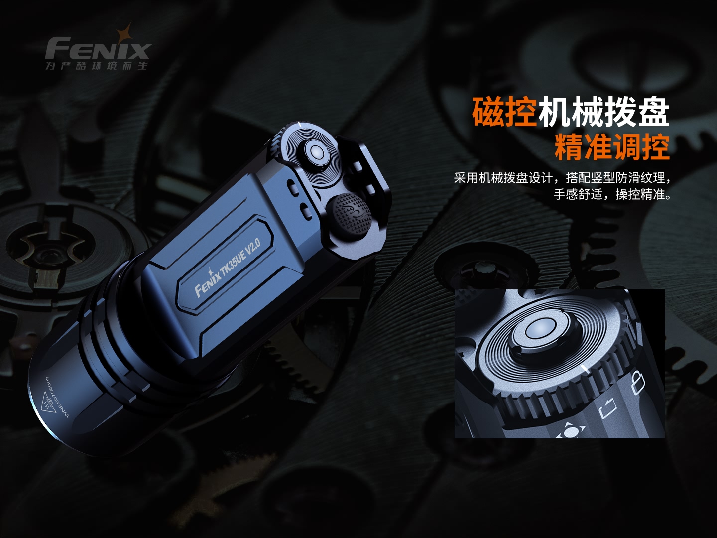 TK35UE V2.0采用尾部撥盤設計,并帶有鎖定功能。為避免誤觸點亮,您可以將模式調整為鎖定模式,也可以在把燈具裝入包前,旋松筒頭或將電池從燈具中取出。
