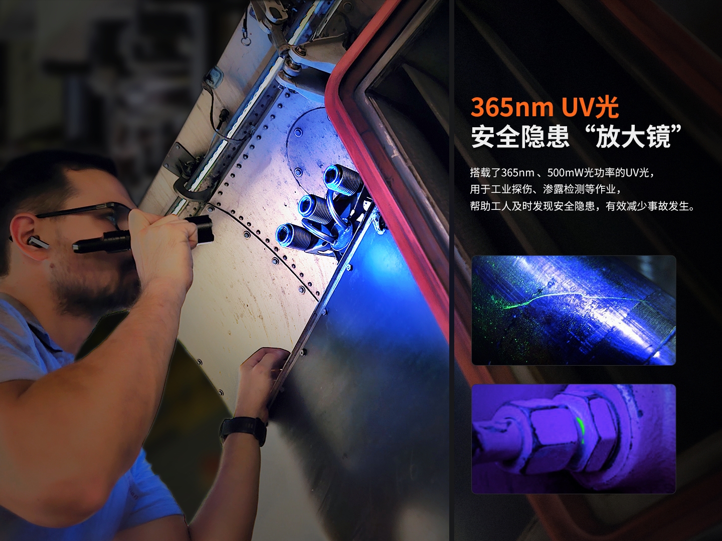 365nm UV光,可用于工業(yè)探傷及泄露檢測
